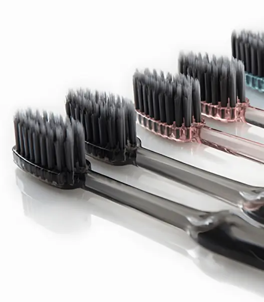 Unique toothbrushes with black quartz bristles. After brushing, your teeth feel smoother, the feeling of clean teeth and fresh breath lasts significantly longer.