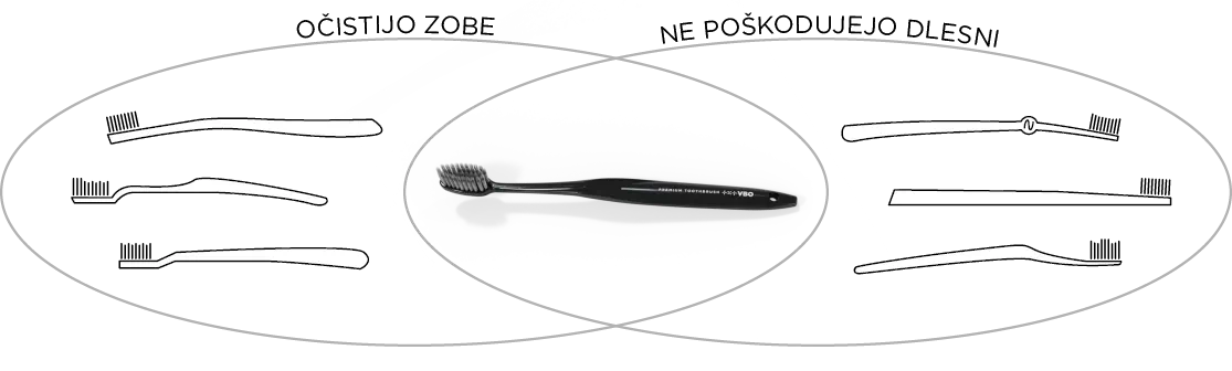 Premium VBO toothbrushes were developed in collaboration with the Kanagawa Dental University in Japan by Dr. Vesna Kaloh, a multiple award-winning dentist and one of the world’s leading experts in invisible braces Invisalign. The development of a toothbrush that truly cleans teeth effectively is based on research conducted by Kanagawa Dental University. Their study confirmed that a toothbrush with black quartz bristles removes plaque up to 40% more effectively than a regular toothbrush, even without toothpaste.